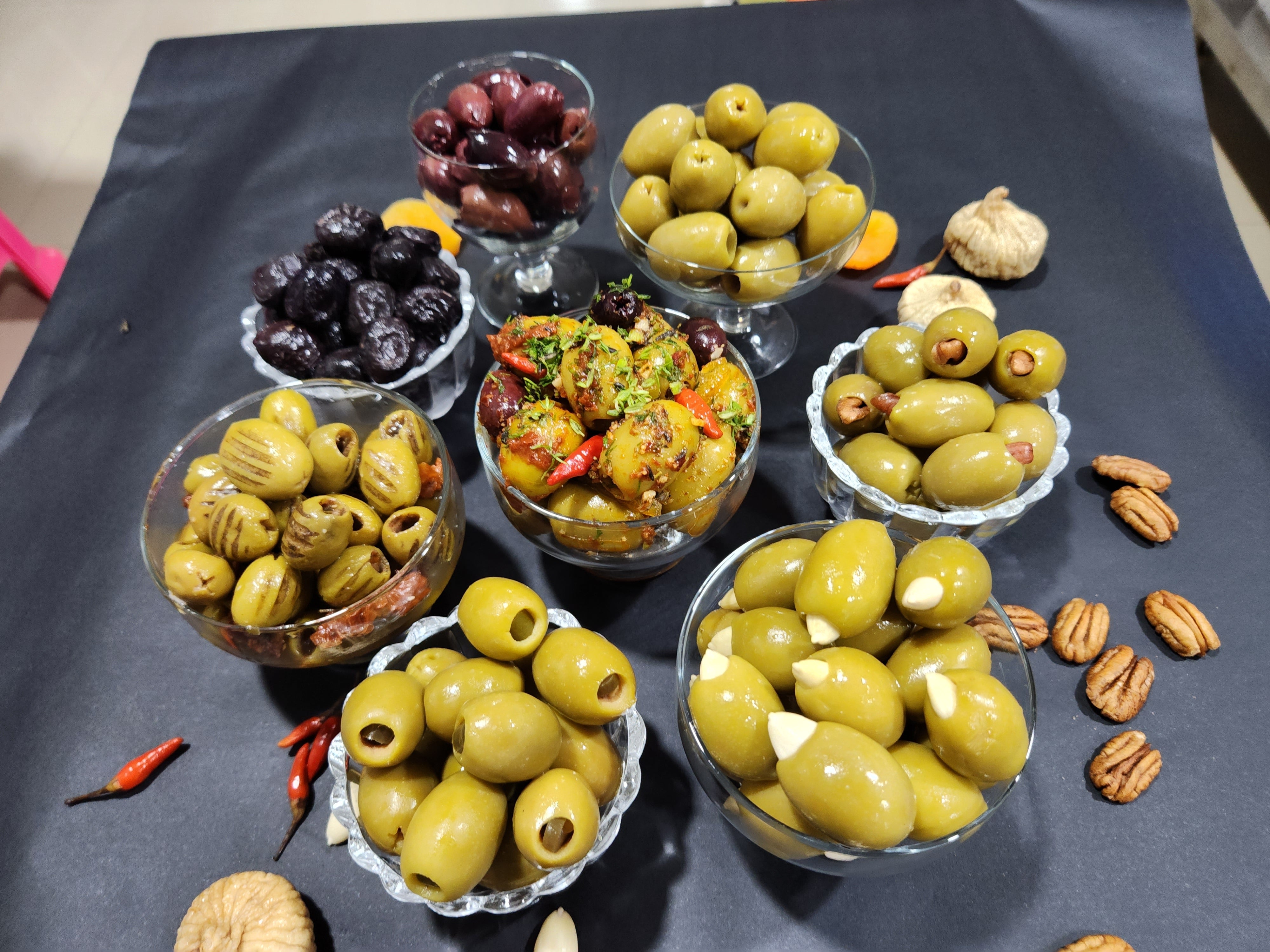 Delicious Queen size mediterranean Olives in an assortment of fillings. Great snacking option in a carry and go...